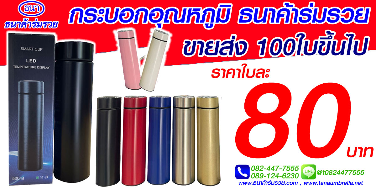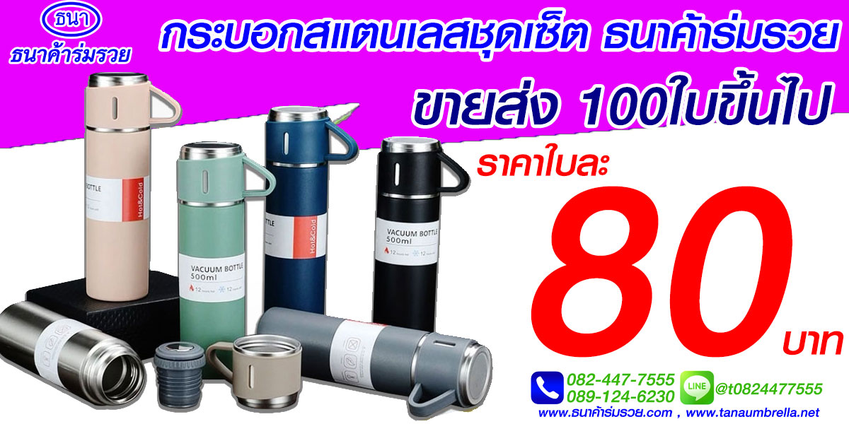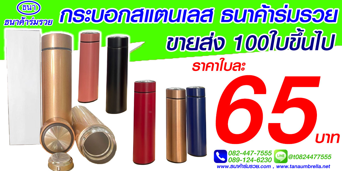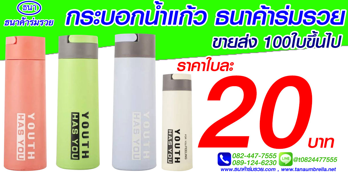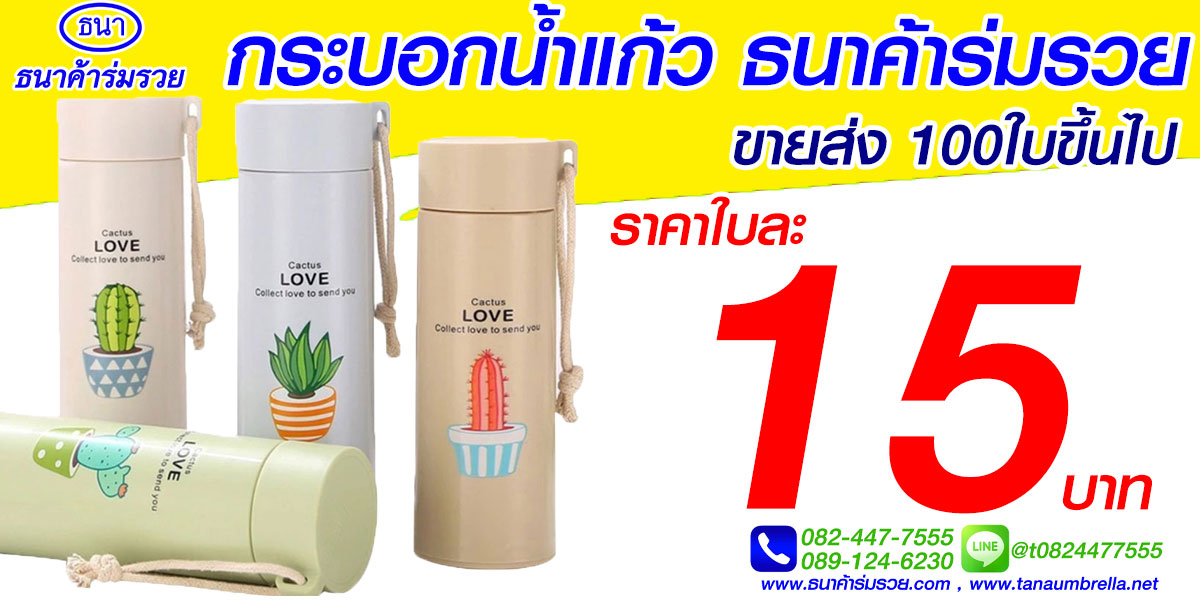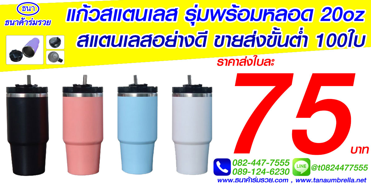 โปรโมชั่นสกรีนโลโก้ฟรี สั่งชื้อของพรีเมี่ยมแก้วเก็บความเย็น ยี่ห้อธนาค้าร่มรวย ขายส่งขั้นต่ำ 100 ใบ ราคาส่งใบละ 65 บาท โปรโมชั่นฟรีค่าออกแบบสกรีน 1500 บาท