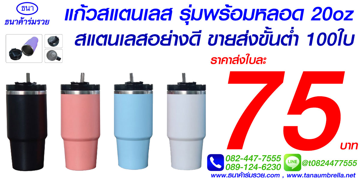 สั่งชื้อแก้วเก็บความเย็นความร้อน ยี่ห้อธนาค้าร่มรวยให้เป็น ของชำร่วยงานเกษียณเกษียณอายุราชการ โปรโมชั่นสกรีนโลโก้ฟรี สั่งชื้อขั้นต่ำ 100 ใบ ราคาส่งใบละ 65 บาท โปรโมชั่นฟรีออกแบบสกรีนโลโก้ฟรี 1500 บาท